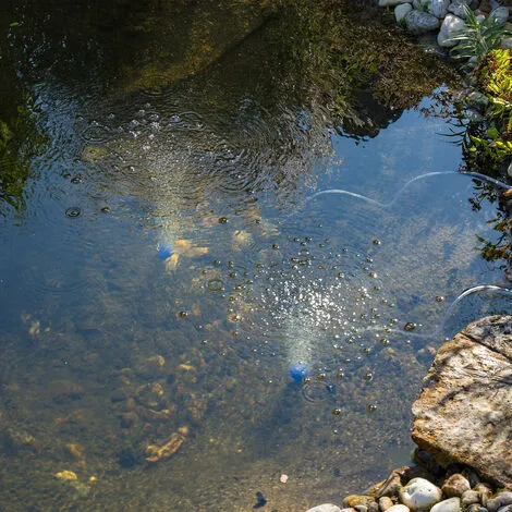 Surtout dans les zones peu profondes, la chaleur estivale affecte léquilibre biologique de votre bassin de jardin. À des températures de leau supérieures à 25°C, la saturation en oxygène de leau diminue. Les processus de nettoyage biologique par des micro-organismes sont entravés, on constate une réduction de la dégradation des nutriments en excès. Un aérateur de bassin solaire permet daméliorer lentrée doxygène et favorise ainsi lauto-nettoyage de votre bassin.