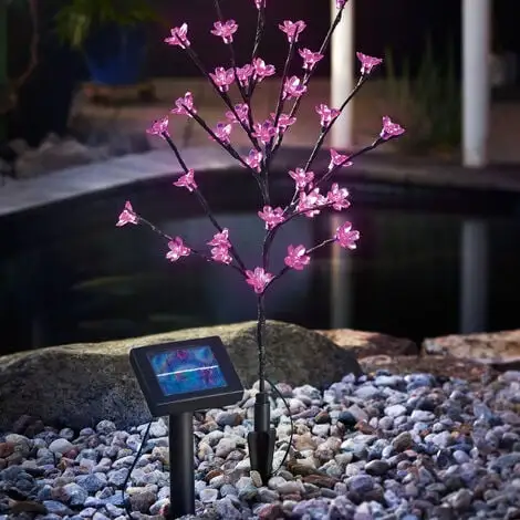 Le buisson à fleurs peut être plié selon votre propre imagination. Il est ensuite simplement collé dans le sol ou le pot à laide dune pointe de terre. Les fleurs roses sont une particularité de jour comme de nuit. Le module solaire peut simplement être branché au sol à laide du piquet de terre.