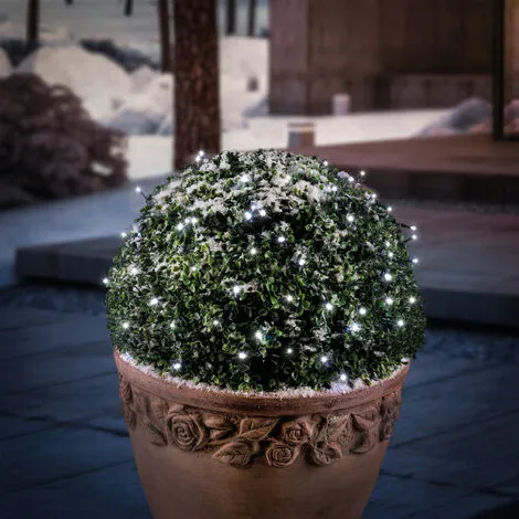Beaucoup de LEDs pour un grand effet ! 100 points lumineux LEDs efficaces, répartis sur un câble de 10 mètres de long, vous offrent des possibilités de décoration extérieure inimaginables. Des plantes et des objets encore plus grands peuvent être enroulés sans effort et présentés efficacement.