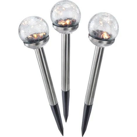 Le module solaire, discrètement intégré à lintérieur de la vraie sphère en verre, charge la batterie au soleil. À la tombée de la nuit, les lumières sallument automatiquement et séteignent à nouveau lorsque la batterie est vide ou à laube.