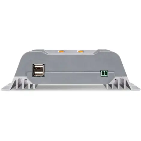 Le contrôleur de charge de haute qualité avec microprocesseur garantit une charge et une protection particulièrement efficaces de la batterie solaire connectée. En fonction de létat de charge de la batterie, elle a différentes fonctions de charge. Un écran LCD fournit des informations sur les paramètres individuels du système solaire tels que : courant de charge, courant de décharge, état de charge de la batterie, module solaire et tension de la batterie et bien plus encore. Les deux ports USB intégrés permettent par ex de charger les téléphones portables. Lassemblage seffectue via le dissipateur thermique arrière en aluminium. Le raccordement électrique se fait via des bornes à vis.