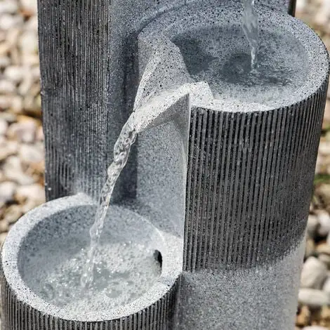 La pompe, qui fonctionne à lénergie solaire moderne, vous permet dinstaller la fontaine solaire de jardin Smart Fountain nimporte où dans le jardin. Vous navez pas à vous soucier dune éventuelle connexion électrique. Avec ses trois stèles en gris frais, la fontaine solaire de jardin Smart Fountain apporte lénergie en mouvement de leau dans votre jardin. Leau coule comme une cascade de la stèle supérieure sur les deux suivantes et est pompée à partir de la stèle inférieure.