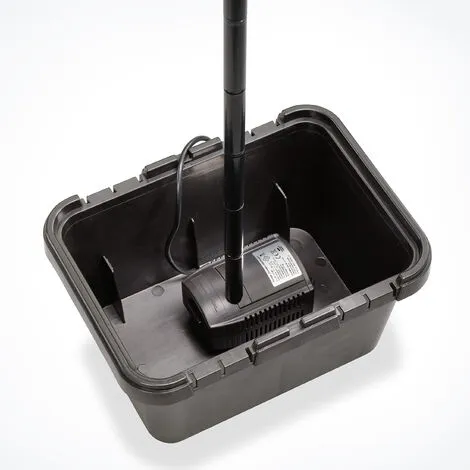 La mise en service est très simple : Placez simplement le boîtier de filtre entièrement équipé dans votre plan deau – le câble de la pompe vous mènera à bon port. En utilisant le nombre de tuyaux montants attachés, vous déterminez la hauteur de la sortie au-dessus du niveau de leau. Vous pouvez également choisir de fixer la buse darrosage pour une fontaine à eau ou laccessoire pour une cloche à eau.