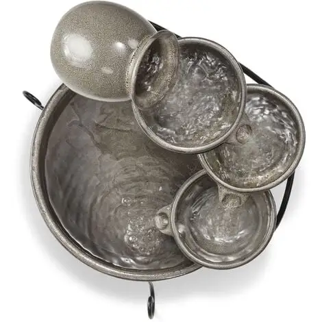 Le cadre en métal robuste assure un support sécurisé, tandis que les bols en céramique galbés individuels incarnent le style méditerranéen typique. Grâce à une pompe solaire de bassin efficace, le soleil se charge seul de lopération. Dès que suffisamment de lumière du soleil atteint le module solaire, la pompe commence à pomper de leau dans la cruche supérieure.
