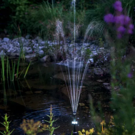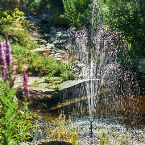 Le boîtier de batterie dispose de 2 sorties commutables. La pompe est connectée à la sortie 18 V. Cette sortie peut être utilisée en mode minuterie. Cela signifie que la pompe est mise en marche toutes les heures pendant environ 10 minutes. Un aérateur de bassin, une pompe ou un éclairage peut être connecté à une autre sortie 6V commutable. Pompe fermée sans balais de haute qualité avec protection contre la marche à sec et contre les surcharges et éclairage LED longue durée. Différentes fontaines peuvent être générées avec les 4 tuyaux montants inclus et 2 arroseurs différents (fontaine à 3 étages et cloche à eau). Prêt à brancher, configuré en quelques minutes.