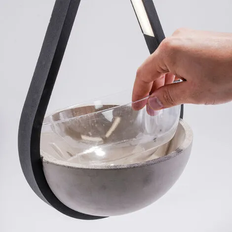 Un bol hémisphérique sert de jardinière dans le cadre en métal de couleur anthracite. Il se compose de béton fin et lisse et dispose dun insert en plastique amovible – environ 8 cm de profondeur et dun volume de 1,3 l. Placez simplement la ou les plantes de votre choix ici – que ce soit des plantes suspendues ou grimpantes, des fleurs ou des herbes.