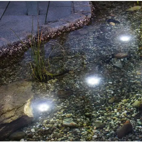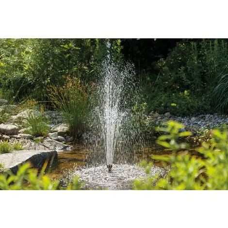 Les trois lumières sous-marines incluses peuvent être connectées à une sortie 6 V commutable supplémentaire. Un capteur crépusculaire allume automatiquement les projecteurs la nuit. Les émetteurs sont reliés entre eux par deux pièces en T. Avec eux, la zone côtière peut être habilement éclairée sous leau. La pompe sans balais de haute qualité avec protection contre le fonctionnement à sec et les surcharges garantit une fontaine ou une cloche à eau impressionnante. En outre, un fabricant de mousse est également inclus. Les accessoires de buse sont fixés à la pompe à laide des 4 tuyaux montants fournis. Prêt à brancher, configuré en quelques minutes.