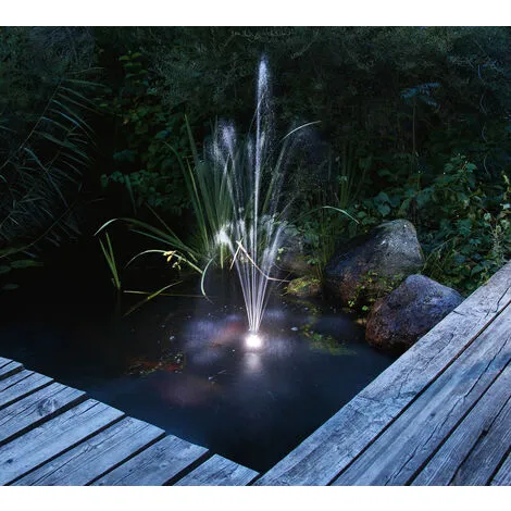 Un sèche-cheveux efficacement éclairé pour létang de jardin ou une conception lumineuse décorative pour une pierre source. Peut être utilisé individuellement grâce à lanneau lumineux amovible. Ainsi, lanneau lumineux peut être placé sur la colonne montante ou un tuyau. Des distances plus longues peuvent être surmontées avec une rallonge de câble (accessoire) pour lanneau lumineux ou la pompe.