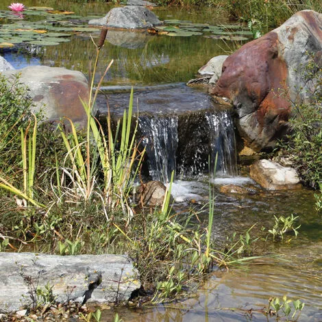 La pompe submersible de ruisseau incluse dans le kit dispose dune protection contre la marche à sec et fonctionne avec un courant continu sans danger de 12 volts. Il franchit des hauteurs de livraison allant jusquà 2,5 m et atteint un débit maximal de 3 500 l par heure. Le long câble dalimentation de la pompe vous permet de positionner plus facilement le boîtier de batterie jusquà 5 m de distance. La longueur du câble entre le boîtier de batterie et les modules solaires est également de m (des rallonges appropriées sont disponibles comme accessoires pour des distances encore plus grandes). La livraison comprend également un tuyau en spirale de 5 m (32 mm ø) pour que vous puissiez démarrer immédiatement votre projet de jardin.