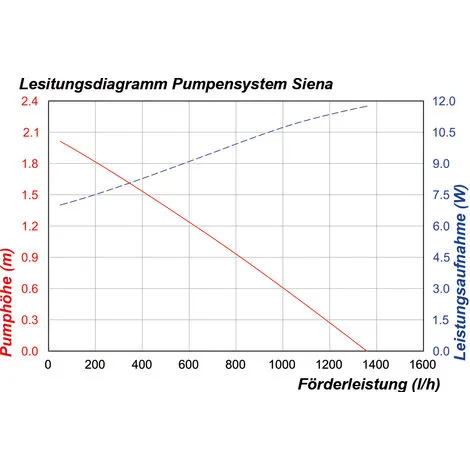 - Max. Hauteur de refoulement : 1,7 m (en plein soleil)