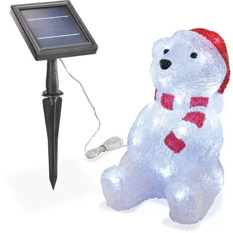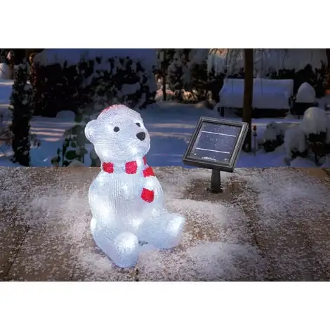 Placé dans le jardin, lours luisant fait une jolie silhouette jour et nuit. Pendant la journée, la lumière du jour et la lumière du soleil sont converties en énergie électrique et la batterie intégrée est chargée. La nuit, la guirlande lumineuse intégrée sallume automatiquement et assure un éclairage optimal de la figurine. Un module solaire aux dimensions généreuses permet une bonne charge même les jours avec peu de soleil.